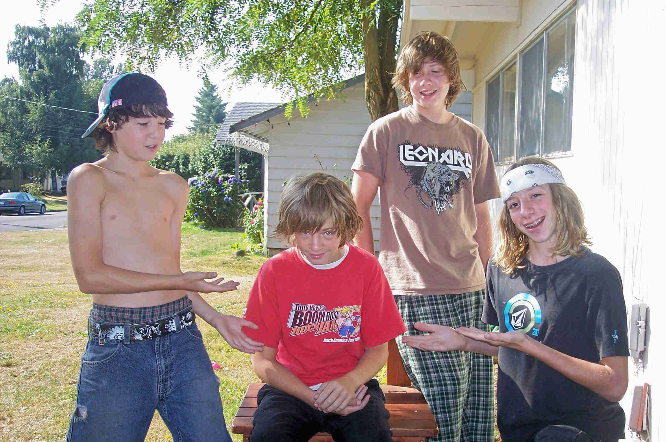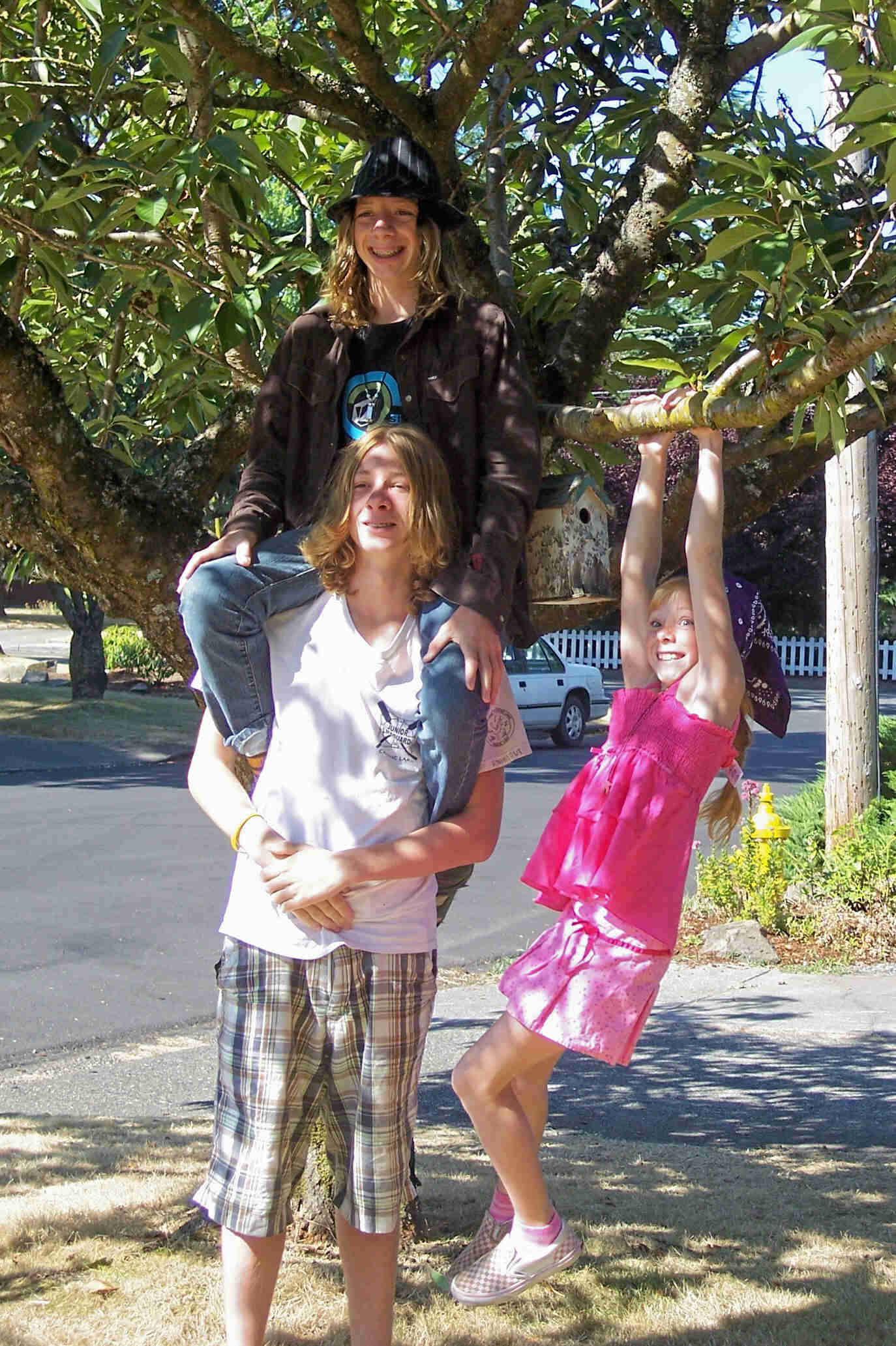 Riker, and Liza in front of Gamp and Nana's house |