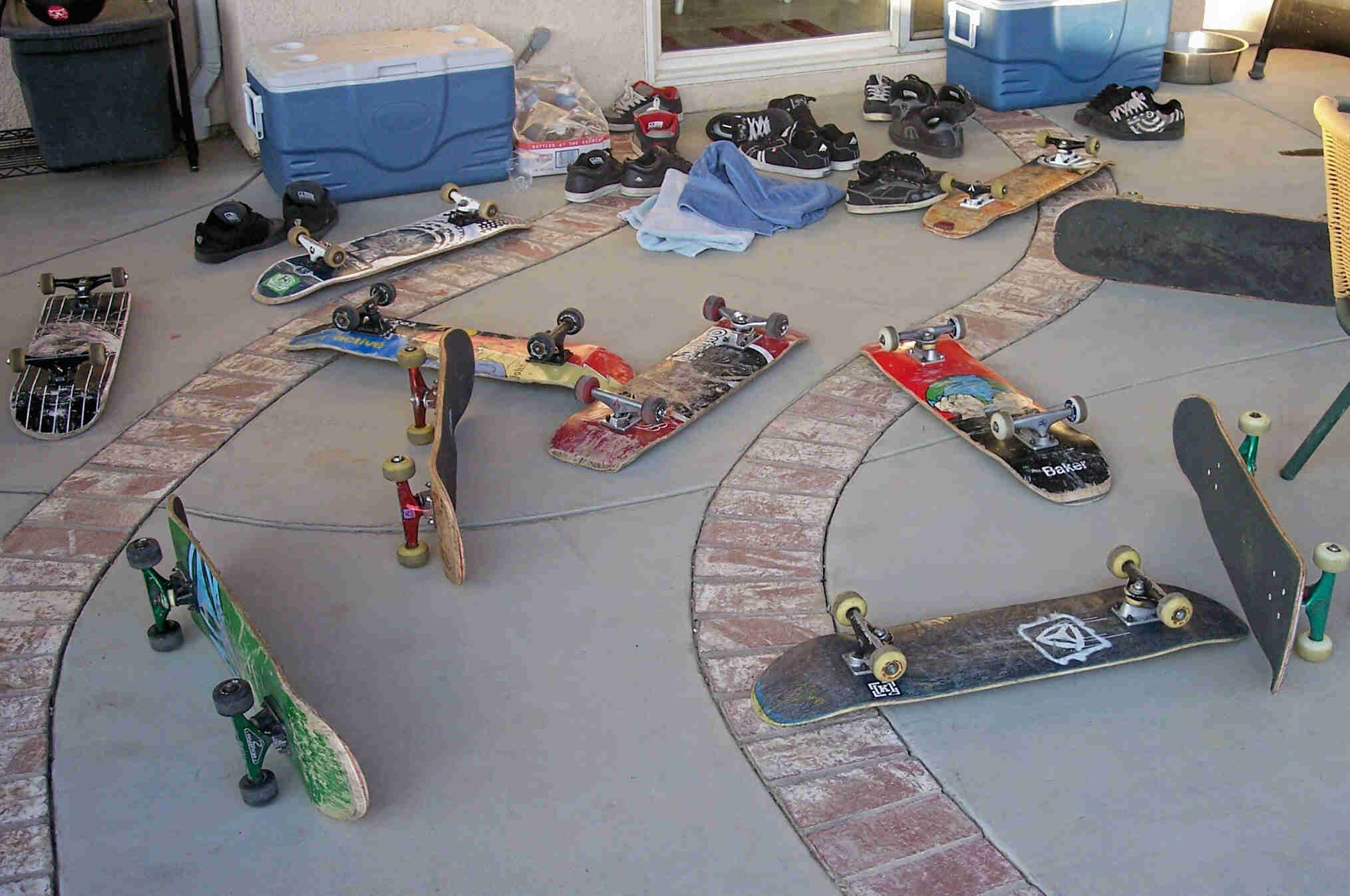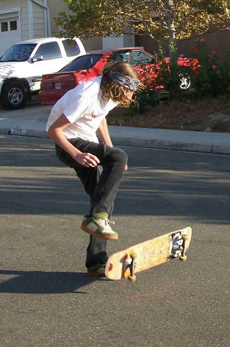 his stuff on the skateboard |