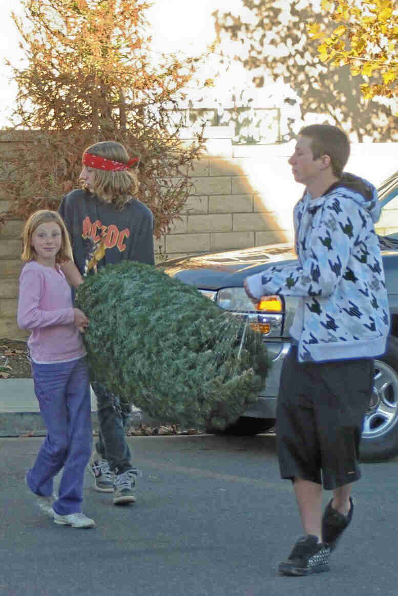 Riker, and Harry unload the tree |
